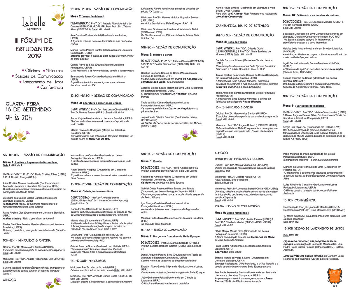 III FÓRUM DE ESTUDANTES, setembro 2019, Instituto de Letras, UERJ