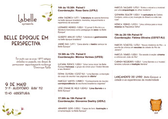 Participação no XV Encontro da Associação Brasileira de Literatura Comparada (ABRALIC), sediado na UERJ, entre os dias 19 e 23 de setembro de 2016, com o Simpósio "Belle Époque: literatura, artes e cultura", sob a organização de Carmem Negreiros, Jean Pierre Chauvin e Rosa Gens.